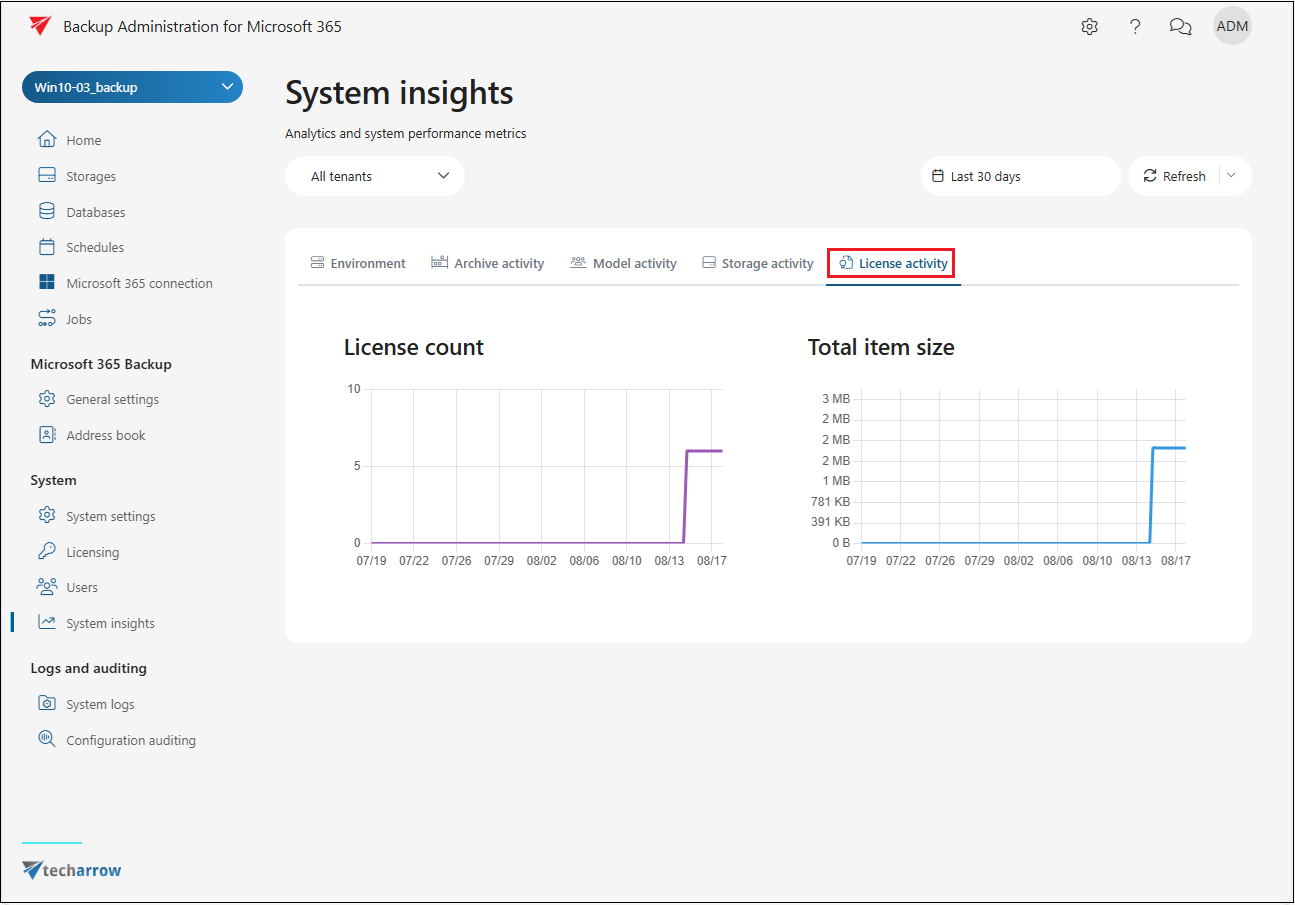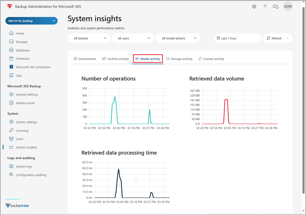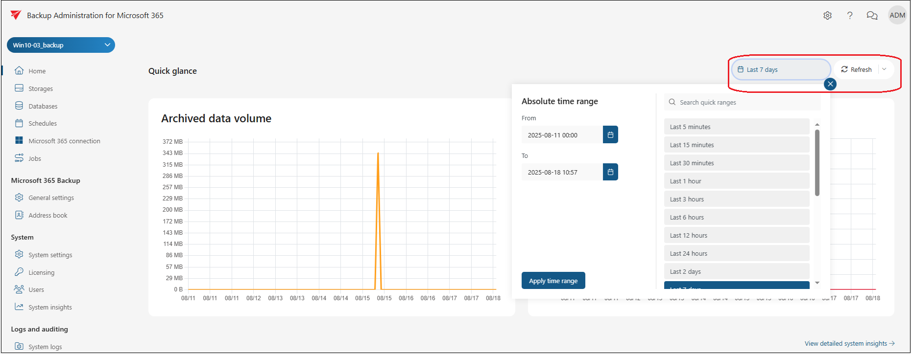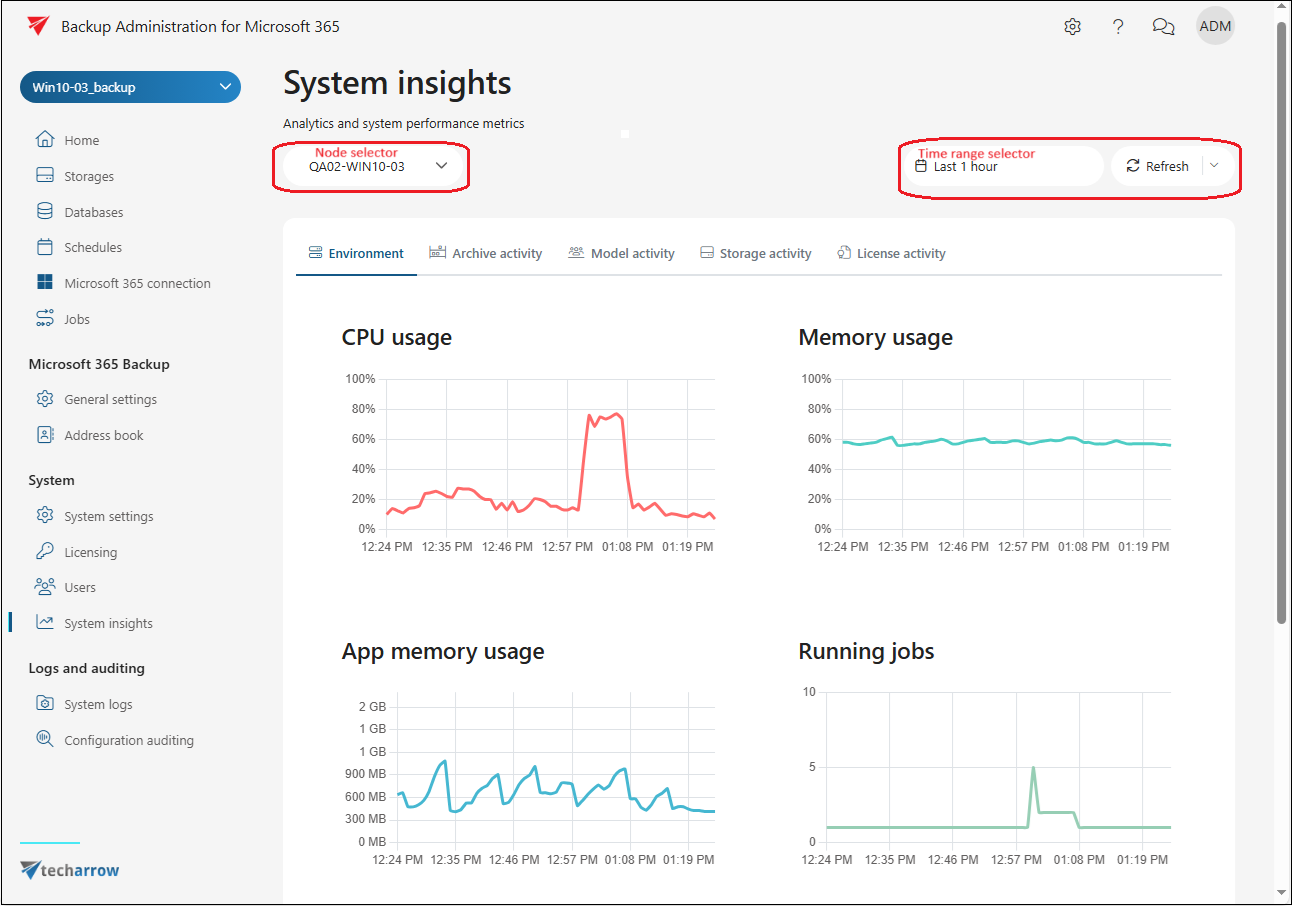 System Insights provides real-time visibility into the performance of your backup and archiving environment. It is built directly into Administration UI and offers clear analytics in all key areas, helping you troubleshooting faster, use your resources more efficiently, and making informed decisions.