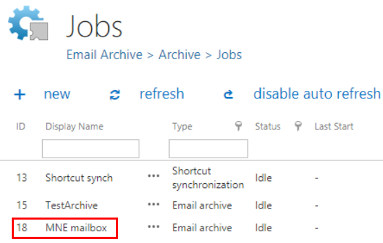 Email Archive ⇒ Archive ⇒ Jobs (for the Email Archive plugin type);