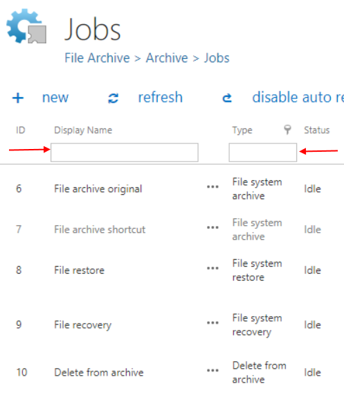 It is possible to search in the name and type of jobs. Type the phrase you are looking for to the corresponding field.