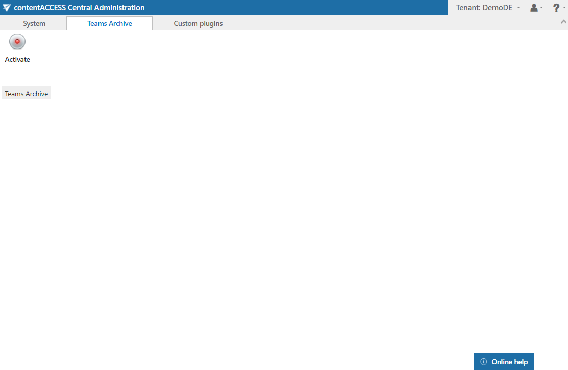When configuring Teams archive for the first time, the user needs to activate it. After successful activation, the Settings of the Teams archive get displayed.