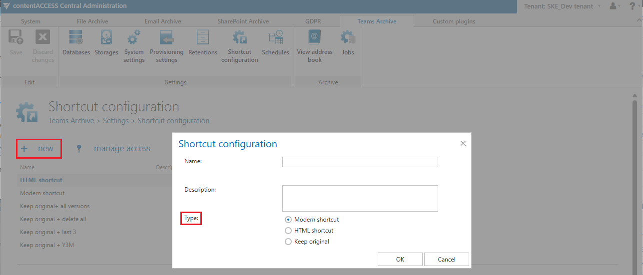 There are 3 types of shortcuts in contentACCESS’s Teams Archive, namely: