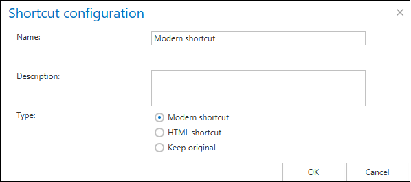 After filling in all required data in the Shortcut configuration window, click OK.