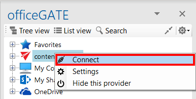 To be able to work with the files, the given system must be connected to officeGATE. To connect to the available providers (systems) the user has to: