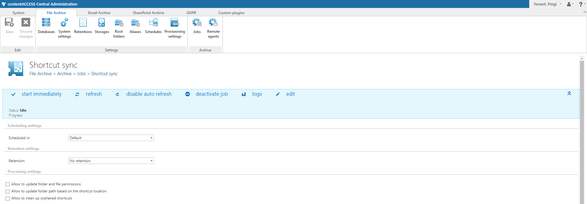 ✓ Shortcut synchronization job: The file archiving module has been extended with a new shortcut synchronization job, which can synchronize permission changes and shortcut location changes. It can also delete shortcuts for which the data has already been removed by the delete-from-archive job. This helps users clean up their file share archives and keep only working shortcuts on their file shares.