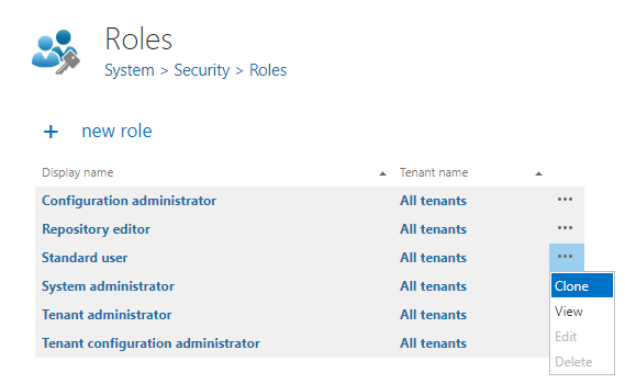 ✓ Role cloning: Creating a new custom role in contentACCESS is now easier than ever. The new role cloning functionality allows administrators to easily create new custom roles based on existing built-in roles. Using the cloning function, administrators can clone the most similar built-in role and focus only on the necessary permissions, while other permissions are already pre-filled.