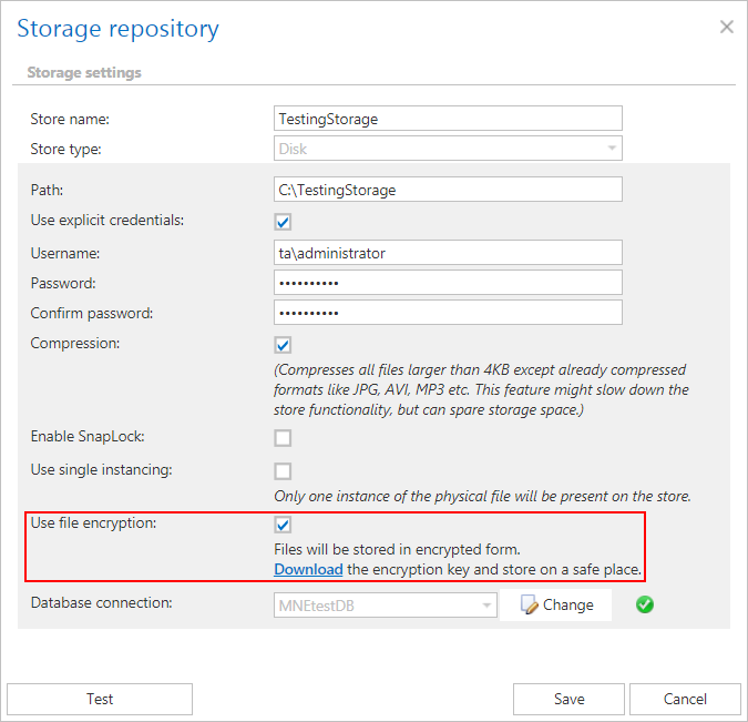 ✓ Disk storage encryption: Encrypt and store your files in one step. With the new storage encryption option, it is easy to add an additional level of security to your archive.