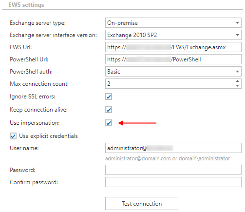 ✓ EWS impersonation access: Microsoft 365 uses strict throttling policies to prevent system overloading. Disabling these settings can be requested through Microsoft support, but the process is long and often refused. The new impersonation access overcomes this limitation, as EWS requests are executed under the account of the mailbox owner. Thanks to this permission, archiving becomes a much faster process. The permission-granting process for impersonation access is also easier compared to delegation access, as the permission must be set globally only for the archive superuser.