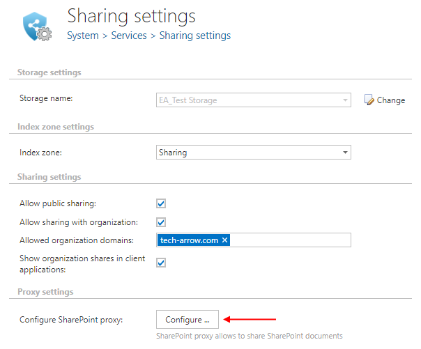 By using the SharePoint proxy, it is possible to share live SharePoint items. All extra features provided by contentACCESS Sharing are applied while the files remain in SharePoint. During sharing, only the document reference of the SharePoint and/or OneDrive item is shared; the item content is not duplicated or copied, which speeds up the entire process.
