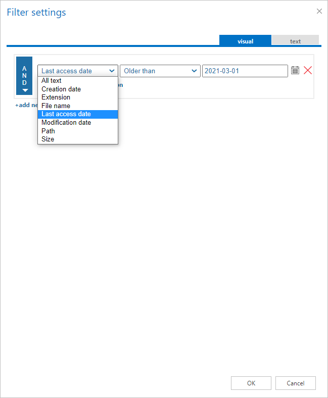 The file archive job was extended with a Last Access Date condition, which allows administrators to archive or shortcut only files that have not been opened for a longer period of time. This improves usability, as frequently used files remain physically stored in the file system.