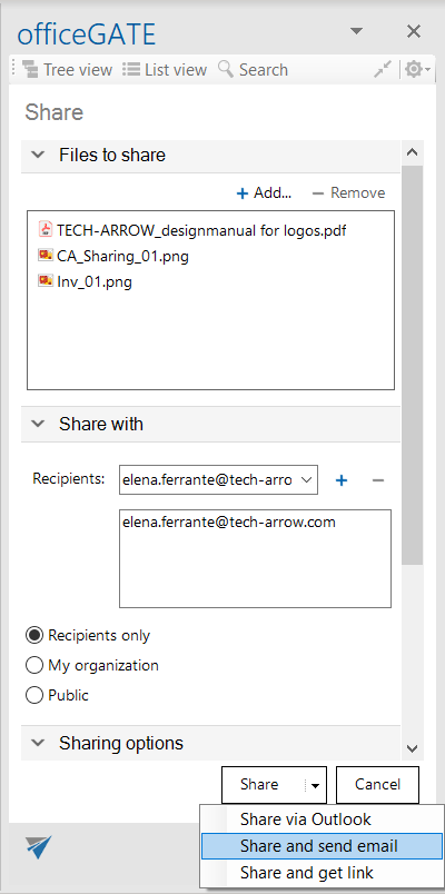 No need to send large attachments anymore—share the file securely with the desired recipients and simply send an email with a link pointing to the files shared via contentACCESS.