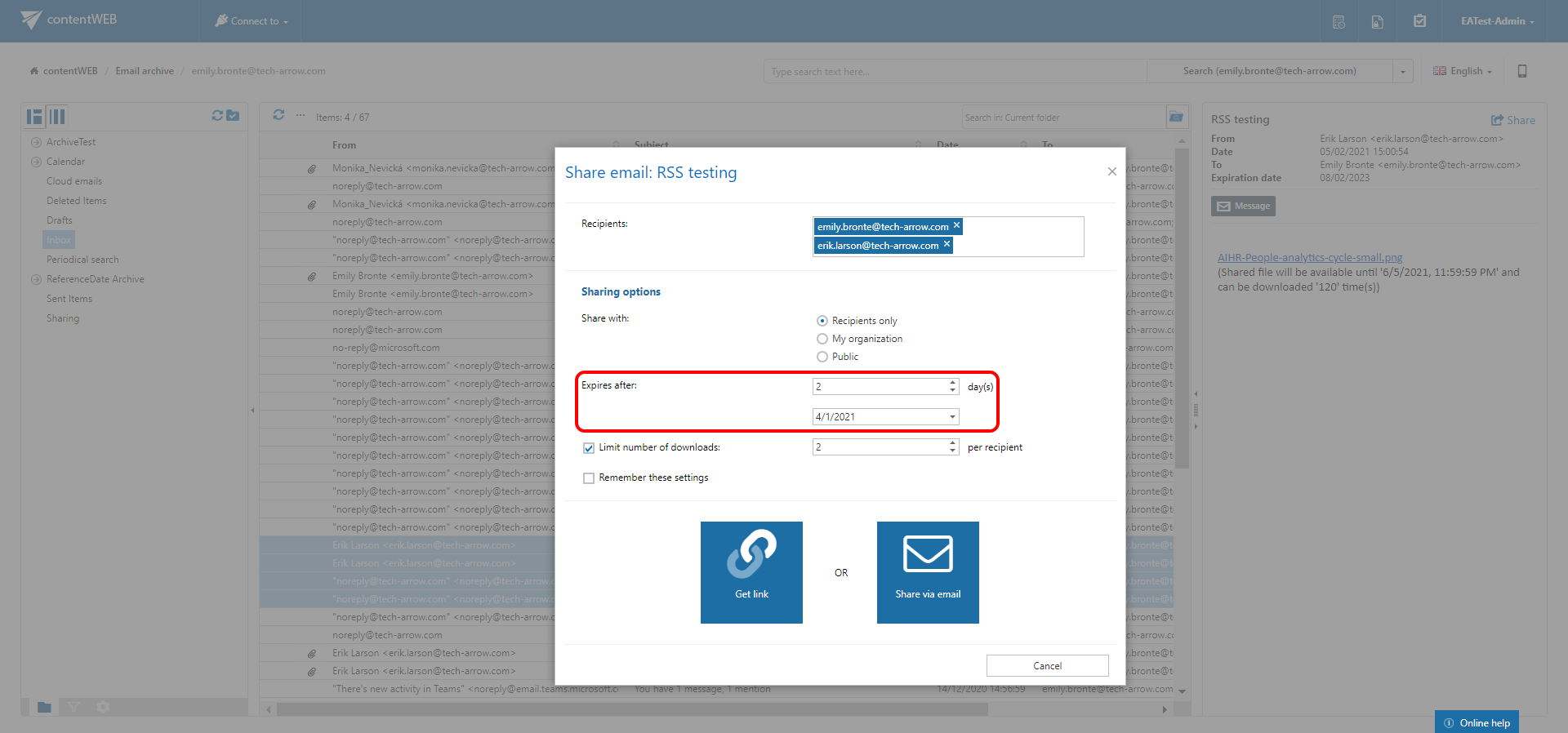 Sharing from the archive is now integrated into contentWEB, the Share app, the Teams app, and officeGATE as well.