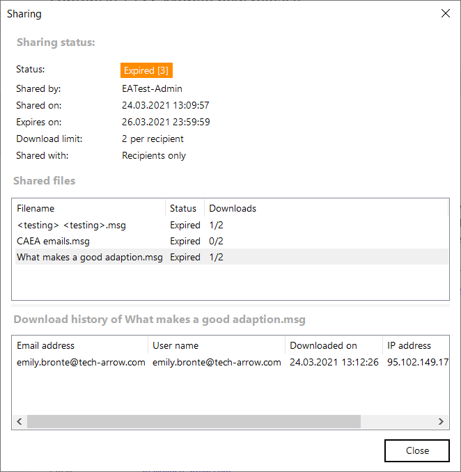 Every item download is also audited, so you will have a clear overview of who downloaded which item.
