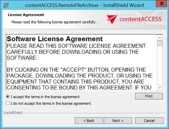 Choose I accept the terms in the license agreement and click Next.