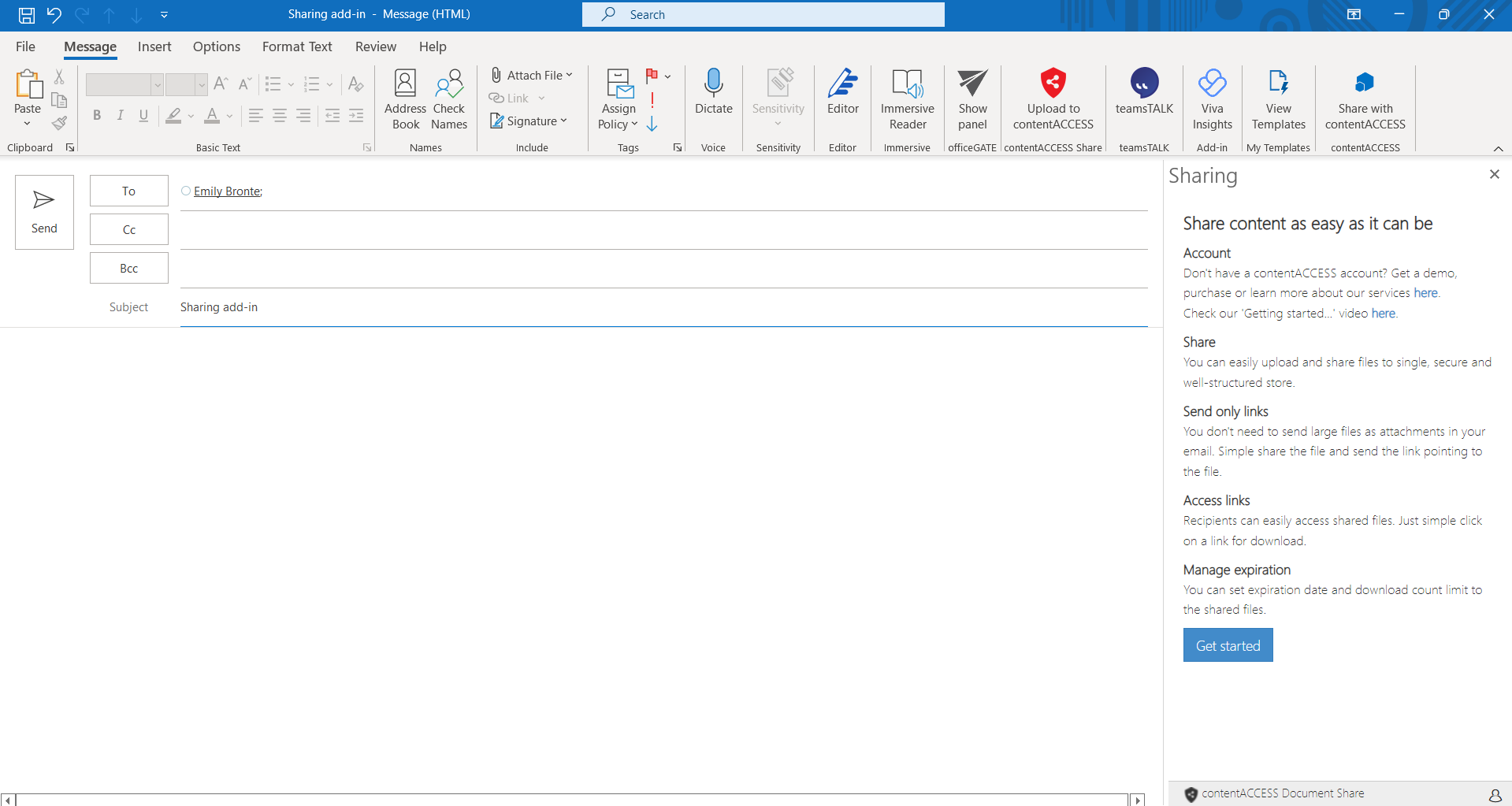 Figure 1. contentACCESS Sharing add-in activation in compose form