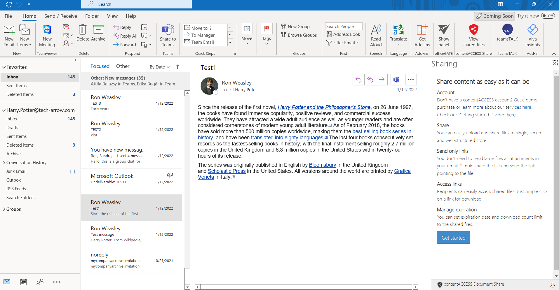 contentACCESS Sharing is an Office Add-in for Outlook and OWA, which helps with large resource sharing between users.