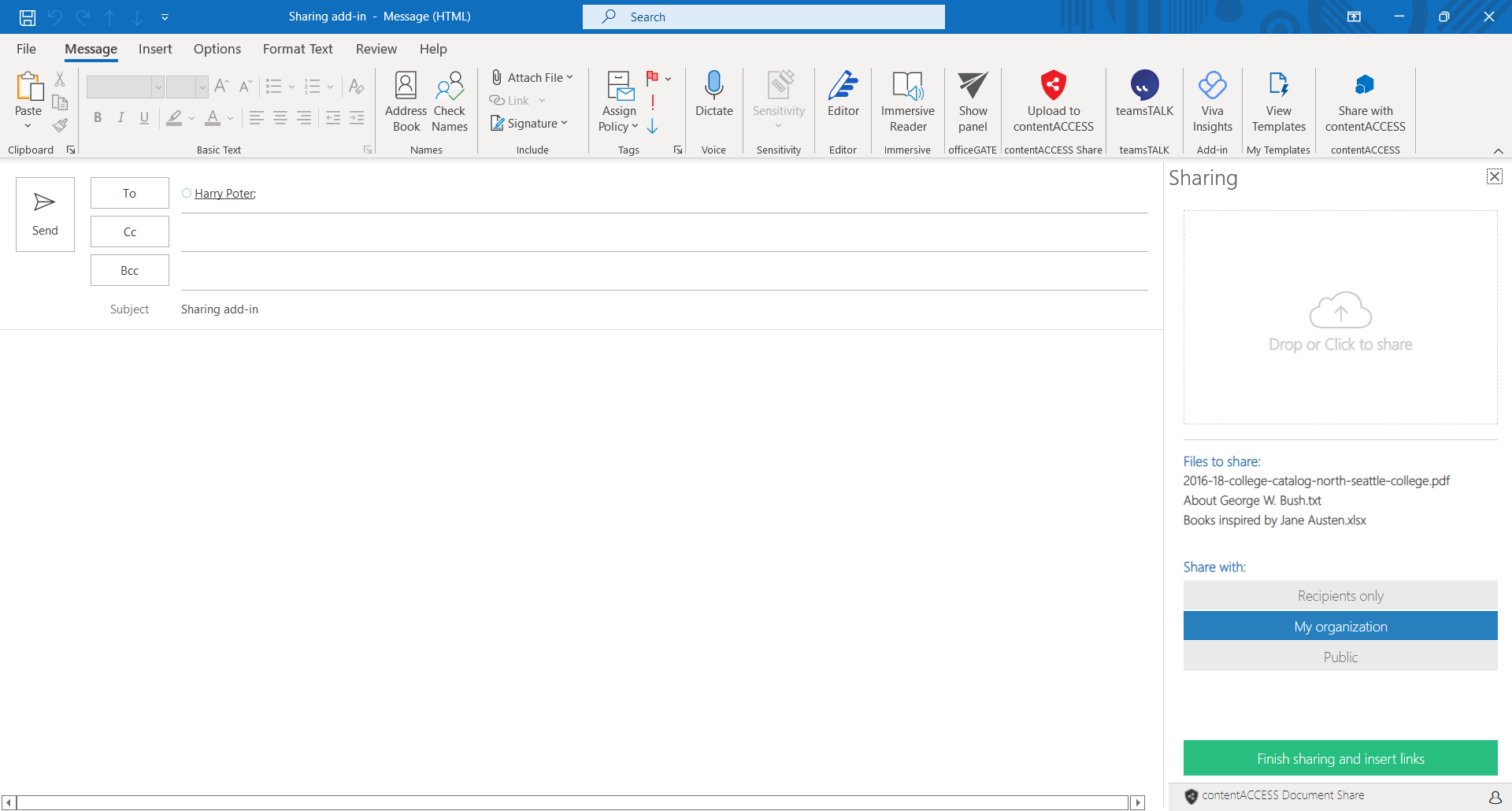 When the Share with option is selected, click on the Finish sharing and insert link button.