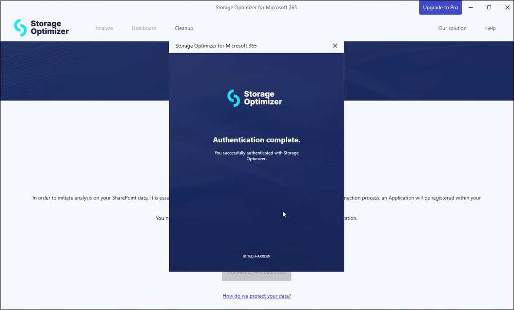 Storage Optimizer stops on the "Authentication complete" page and nothing happens
