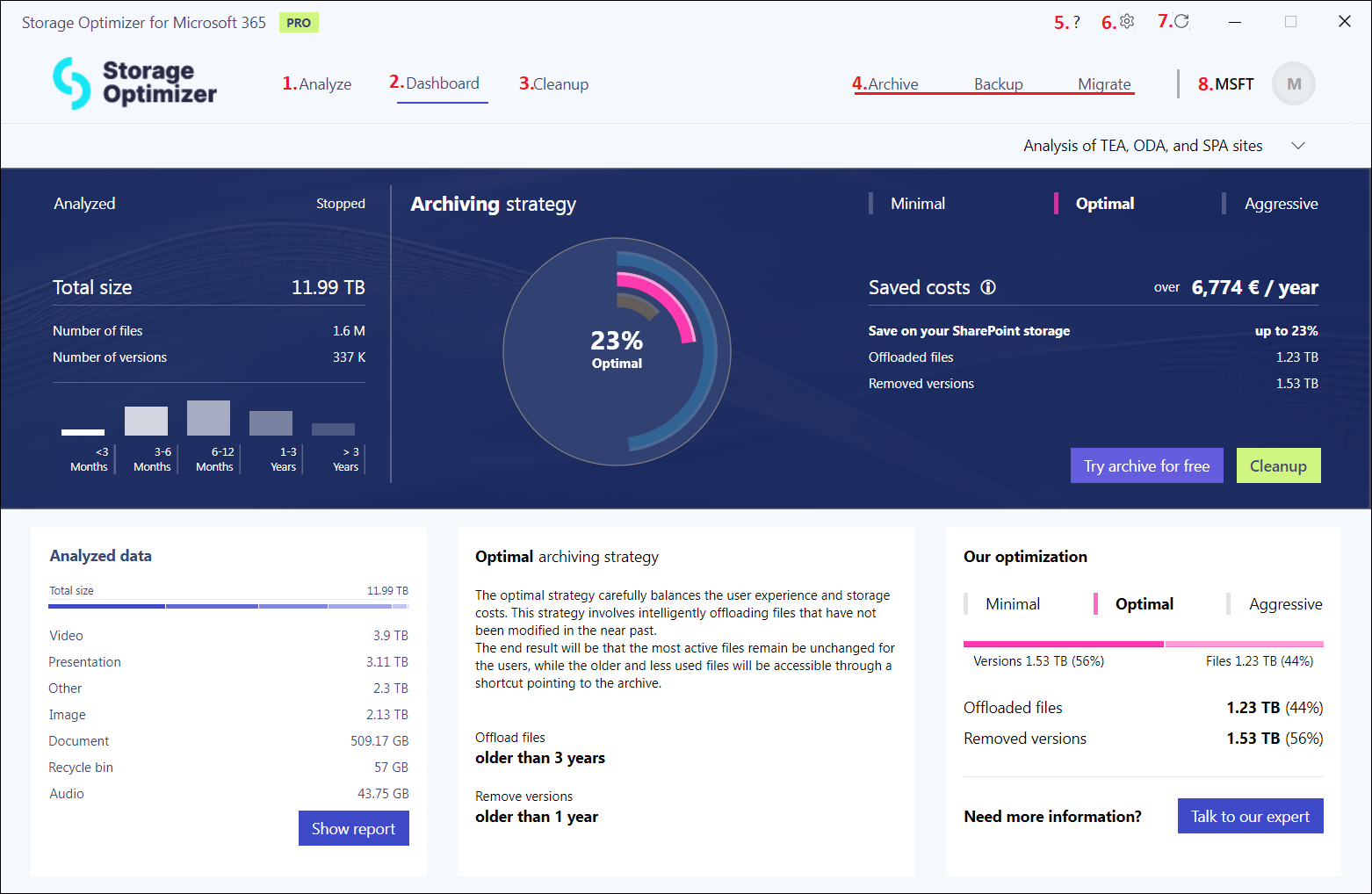 - Help – the Help button opens the Storage Optimizer manual in the browser.