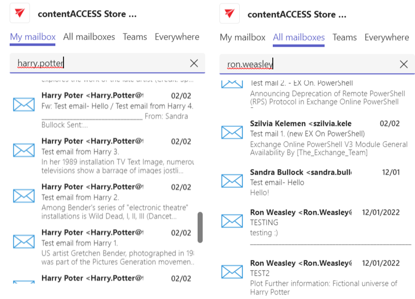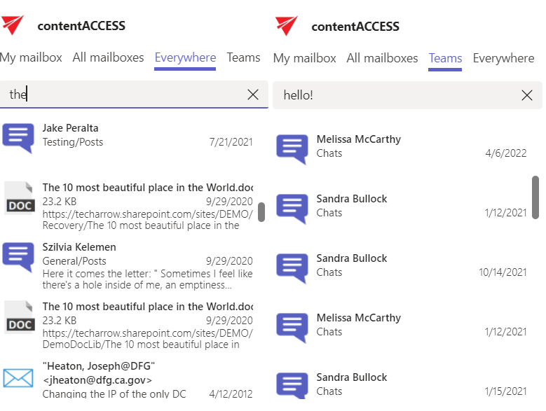 Click on the icon. The contentACCESS window will open. Here you can search in your mailbox, all mailboxes, teams, or the whole archive. You will have access only to the items you have permission for, based on the user you logged in with. Click on the item you would like to share – it will be added to your message.