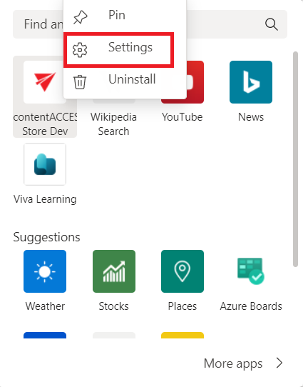 If you want to change the user you are signed in with, right-click on the app and choose Settings.
