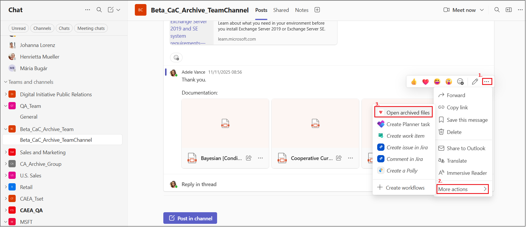 If the TeamsSearchApp is installed in Microsoft Teams and there are modern shortcut files in the selected team, users can open these files directly through the TeamsSearchApp. This option is available because if you simply click the file in the post, Teams will attempt to open the shortcut itself (in .alink format) rather than the original archived file, so the actual file content will not be displayed.