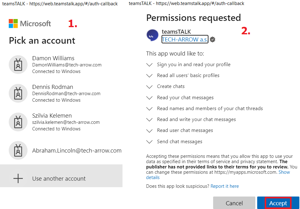 After the download, log in with your Office 365 account (O365 Business subscription). No new password requirements or email address is needed. Enter your current credentials and log in. After entering the credentials, you will be redirected to a Microsoft window where a permission request needs to be accepted. You will be redirected back to the app, where you can start using the app by activating the license key, or you can get your free key.
